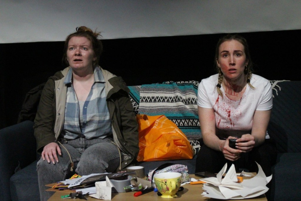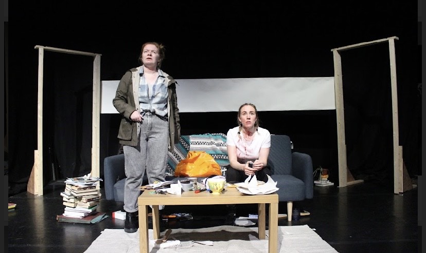 Rachel Fraser’s direction of ‘Kneecaps’ embraces the naturalism of this play, by truly embedding the domestic setting. This helps bring Jess and Ali’s relationship to life and bring a sense of realism to make their world not so different from our own. With that, the absurdity explored in the conditions of the epidemic is also very much present, bringing farcical moments helping to hit the comedic notes of the text. There are points where the absurdist qualities of the epidemic could have been leaned on heavier, bringing more depth to the events unfolding outside of the flat, however, that may have dampened the emotional profundity of Ali and Jess’ relationship.