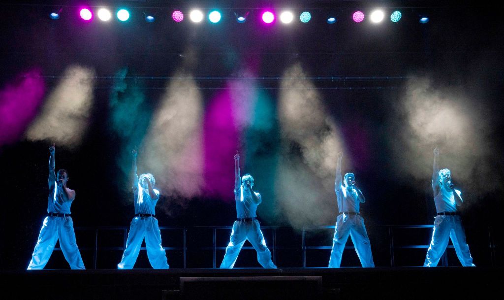 The choreography was 90’s fun loving, boy band moves! A lot of fun, there was a good balance of simplistic steps which could be copied and performed by the everyday fan and some more intricate dance moves that wowed the audience. The set design by Lucy Osborne was simplistic, yet effective. The use of the steps created a lovely visual image, almost cinematic.