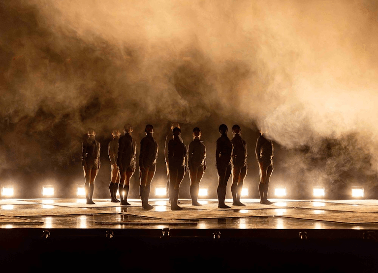 At this performance, the ensemble is led by principal dancers, Xolisweh Richards and Anna Williams. Richards and Williams are nothing short of incredible in this piece, moving with an unwavering sense of purpose, strength and emotion. When required, Richards and Williams are able to blend seamlessly with the ensemble’s intricate movements that appear to allow them to move as a one solid unit; however, they excel even further when carrying solo moments through the piece – both physically on stage and when being suspended from flies.