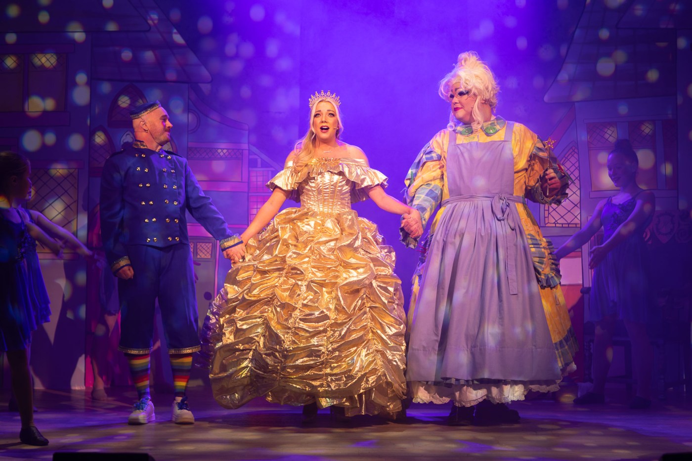 But the classic tale of Cinderella in panto-land cannot be told without Cinders best friend and loyal subject Buttons played by Laurie Scott. Boundless energy and one for the kids, Scott brings warmth and humour to the show along with plenty audience interaction. The physical comedy is apparent and you can tell Scott is a seasoned performer. Without a lot of solo stage time, Scott had to shine on a full stage but managed to make Buttons stand-out at certain moments. Some jokes landed and others just missed, but the kids still loved the silliness that Scott brings to the character.