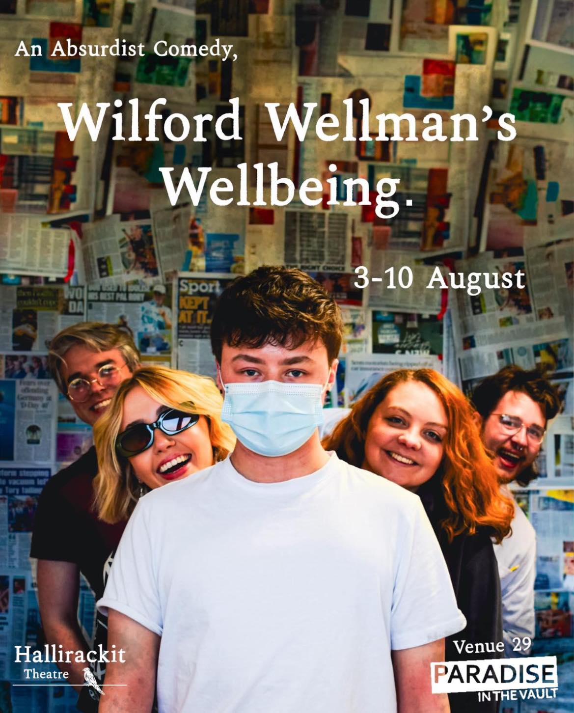 Wilford Wellman’s Wellbeing is a delightful, absurdist play brought to life by brand-new theatre company Hallirackit Theatre. We follow Wilford, a young man in hospital struggling to get better as he is ‘tormented’ by hammed up, caricatures of his family members and doctor. We enjoy the silly antics of the players and sympathise with Wilford’s frustration as he tries to make sense of it all whilst being doped up on medication and dealing with the insisent ticking clock.
