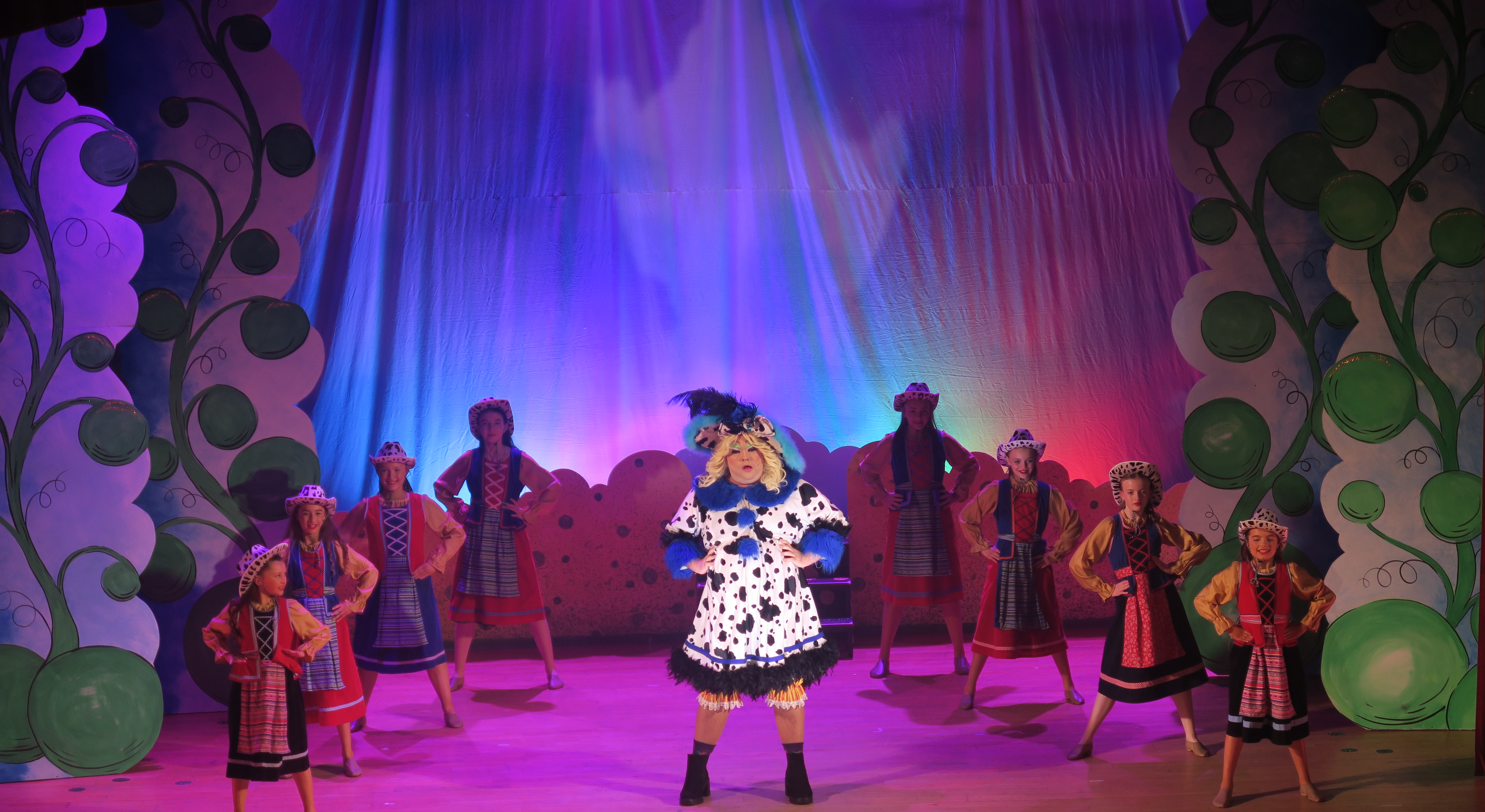 Leo MacNeil is really fun as Daisy the Cow. He has an excellent presence and his line delivery is on point. MacNeill glides through audience interaction with an enviable comfort and feels as if he’s been doing this for years. Along with his brother Harrison MacNeil as Madame Tattie, they are such a great duo. There’s a clear relationship and comfort on stage together and the audience feels like they could watch them all day. Harrison also plays the Giant, Grotty. Harrison does very well to portray two such contrasting characters, with excellent accent work and an admirable energy for both characters, Harrison embodies the giant without much-costumed help, yet makes the figure feel imposing and sympathetic at times too.