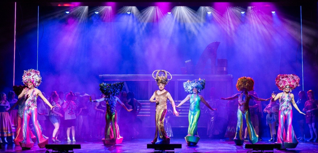 The creative team for this production had a mammoth task of taking an amateur company used to performing on a smaller stage, and creating a large theatrical production on one of the biggest in the country. Priscilla translates well on the big stage and director Malcy J Burnett has done an overall good job of creating a high standard production, utilising the professional resources the Festival theatre has to offer for large set pieces and flying characters, also having the space for a fabulous bus! That being said there is some moments with set being brought on and off that was slightly clunky and could have been better thought out, although this was the first evening so could have been down to teething issues which is to be expected with such a monumental production. Finlay Turnball’s musical direction of this production is stunning, the music featured sounds incredible, the band sounded professional and so did the performers. Fiona Burns’ choreography fills the stage brilliantly, energising each musical number.