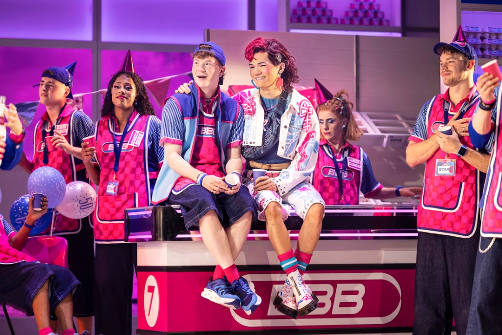 Shaun Kitchener’s book has a really good concept, especially when it comes to the diversity of relationships being explored on stage. The premise of the supermarket as the setting of this musical is strong and felt new, yet it didn’t feel like it was utilised to its full potential. It feels like there is a lot packed in with not much depth when exploring, it feels like there needs to be more fun had in the dialogue, to match the energy the performers are bringing to this production. To add to this, the subject of miscarriage and baby loss seemed handled with a lack of care, it’s a very sensitive subject that could affect members of the audience. It felt like a jarring element of the narrative and out of place within this style of jukebox musical.