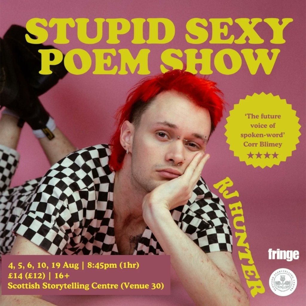 RJ Hunter’s (Loud Poets Slam Champion 2023) ‘Stupid Sexy Poem Show’ debuted at the Scottish Storytelling Centre in February this year, gaining great critical acclaim. Now they are bringing the show back for this year’s Edinburgh Fringe!